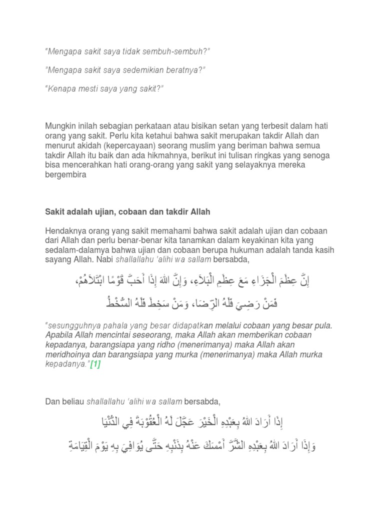 Hal ini yang kelak membawa manfaat yang baik bagi kesehatan kita. Sebagaimana orang yang makan ia tidak bisa menikmati kenyang yang begitu nikmatnya apabila ia tidak merasakan lapar jika ia merasa agak kenyang atau kenyang. Kakak sakit ini ada dua jenis satu yang memang allah bagi. Kepasrahan ini pula yang menuntunnya untuk ber tobat.