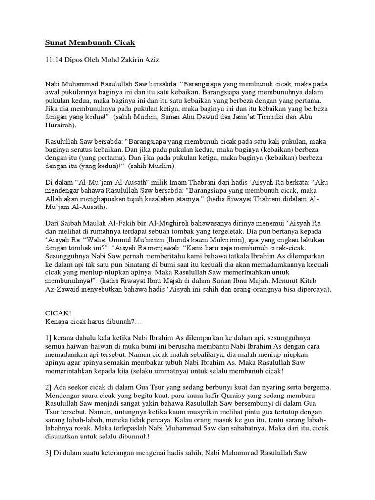 Namun cicak malah sebaliknya dia malah meniup niupkan apinya agar apinya semakin membakar tubuh nabi ibrahim as. Maka kata harus memastikan kata al auzagh dalam hadits tersebut apakah untuk menunjukkan kata cicak seperti cicak cicak di rumah kita atau tidak. Jazakumullah khairan katsira semoga allah membalas anda dengan kebaikan yang banyak. Kenapa cicak harus dibunuh.
