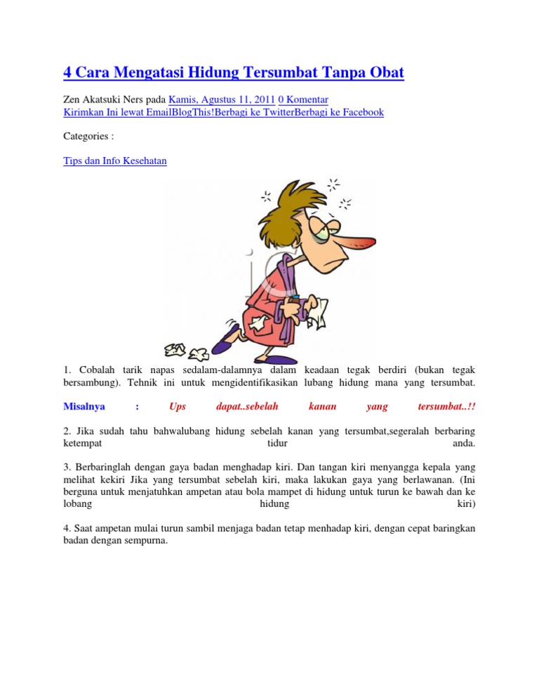 Saat mengalami hidung tersumbat sebelah aktivitas dan tidur anda bisa terganggu lantaran sulitnya bernapas. Hidung tersumbat dapat terjadi hanya pada satu atau kedua sisi hidung. Disini akan kita bahas tentang penyebab hidung tersumbat beserta gejala yang menyertainya dan cara mengatasinya baik pada dewasa ataupun hidung tersumbat pada bayi serta obat hidung tersumbat. Hidung tersumbat bisa terjadi pada salah satu rongga hidung hidung tersumbat sebelah atau bisa juga kedua duanya.