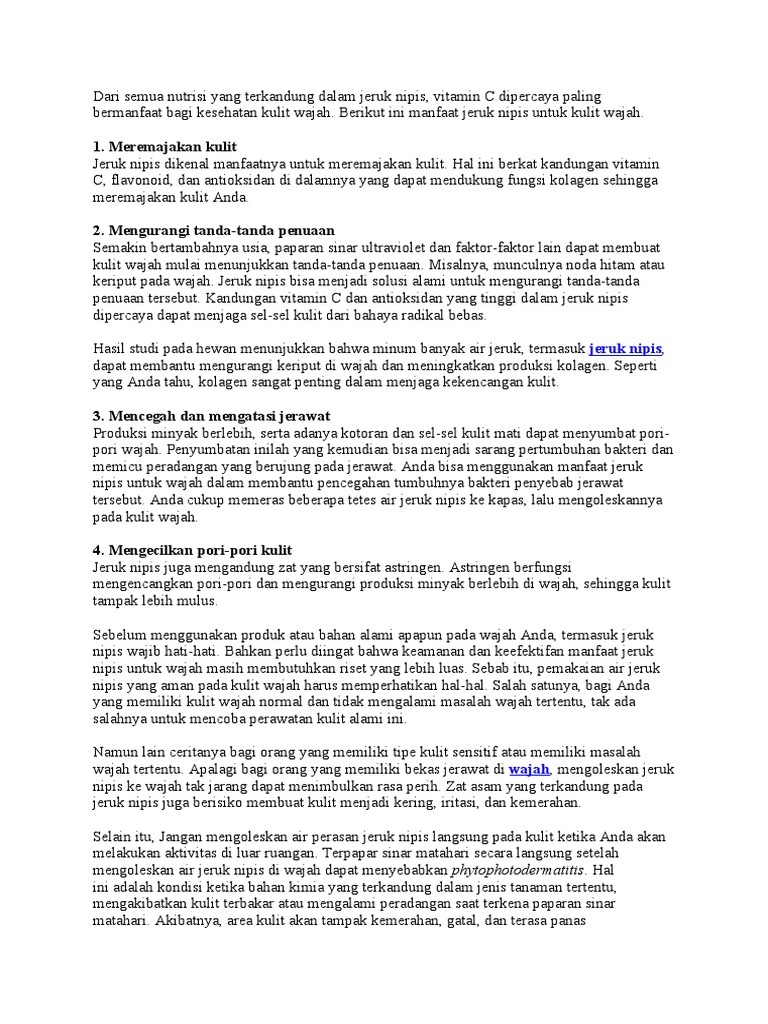 Selain itu zat asam pada jeruk nipis juga berisiko membuat kulit menjadi kering kemerahan perih hingga iritasi. Ada banyak manfaat jeruk nipis untuk wajah yang bisa anda dapatkan dengan mudah bahkan bukan hanya bagian wajah saja sebenarnya yang bisa mendapatkan manfaat dari penggunaan jeruk nipis. Tambahkan madu murni untuk hasil yang lebih optimal. Namun jika sudah beberapa detik rasa perih akan hilang sendiri.