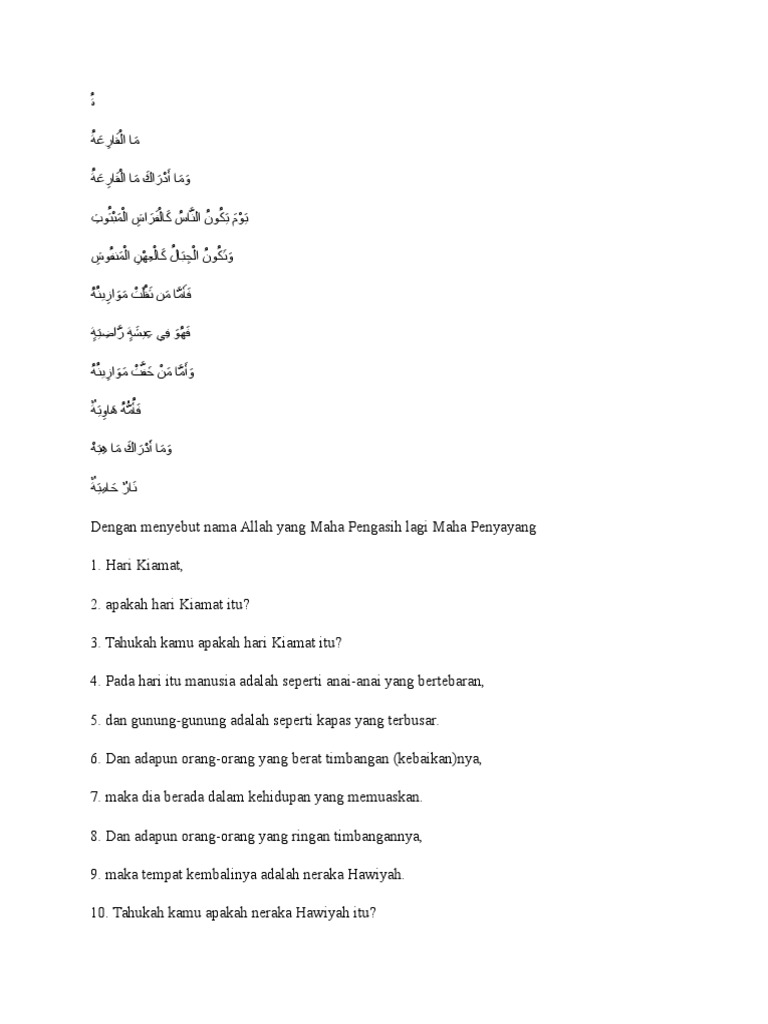 Karena kafir quraisy juga memiliki cacat dalam hal tauhid rububiyah yaitu mereka mengingkari akan dantangnya hari kiamat. Ketika hari kiamat ini datang seluruh alam semesta. Al qariah hari kiamat 11 ayat. Adapun mengenai waktu terjadinya kiamat itu tidak ada seorang pun yang mengetahuinya kecuali allah.
